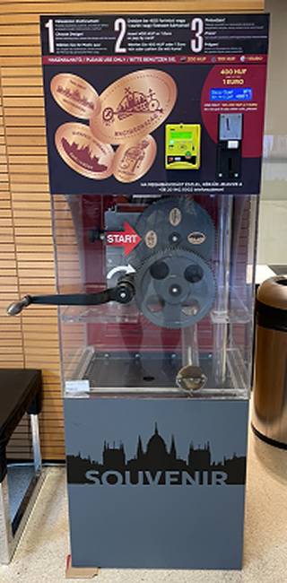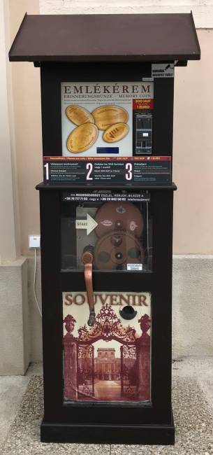 1, Bankkártyával, 230 volttal működő érmeprés fa szekrényben vagy plexiházban: 2.670.000 Ft + áfa