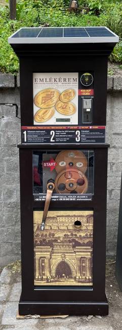 2, Bankkártyával és napelemmel működő érmeprés fa szekrényben: 2.890.000 Ft + áfa